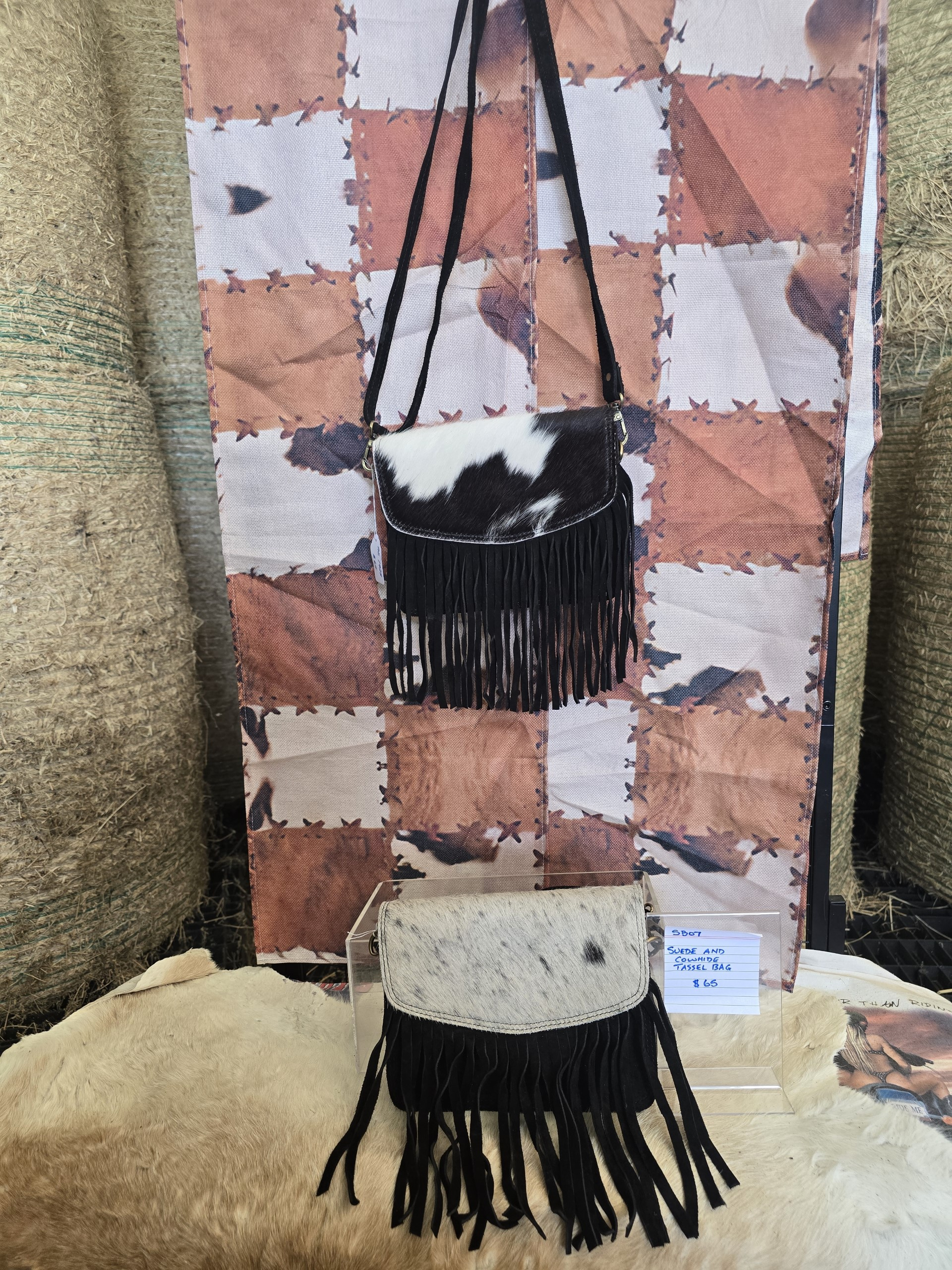 Cowhide and Leather Tassel Bag